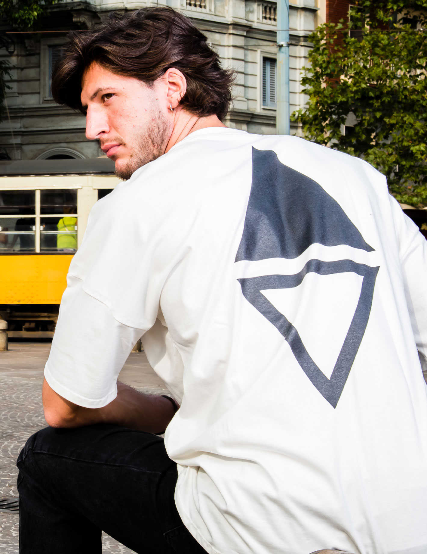 La versione panna, o avorio, della t-shirt presenta il logo TIP in nero. Il simbolo TIP è presente sia sul davanti in piccolo vicino al collo, e sul retro dove appare in grande e per questo visibile e riconoscibile.