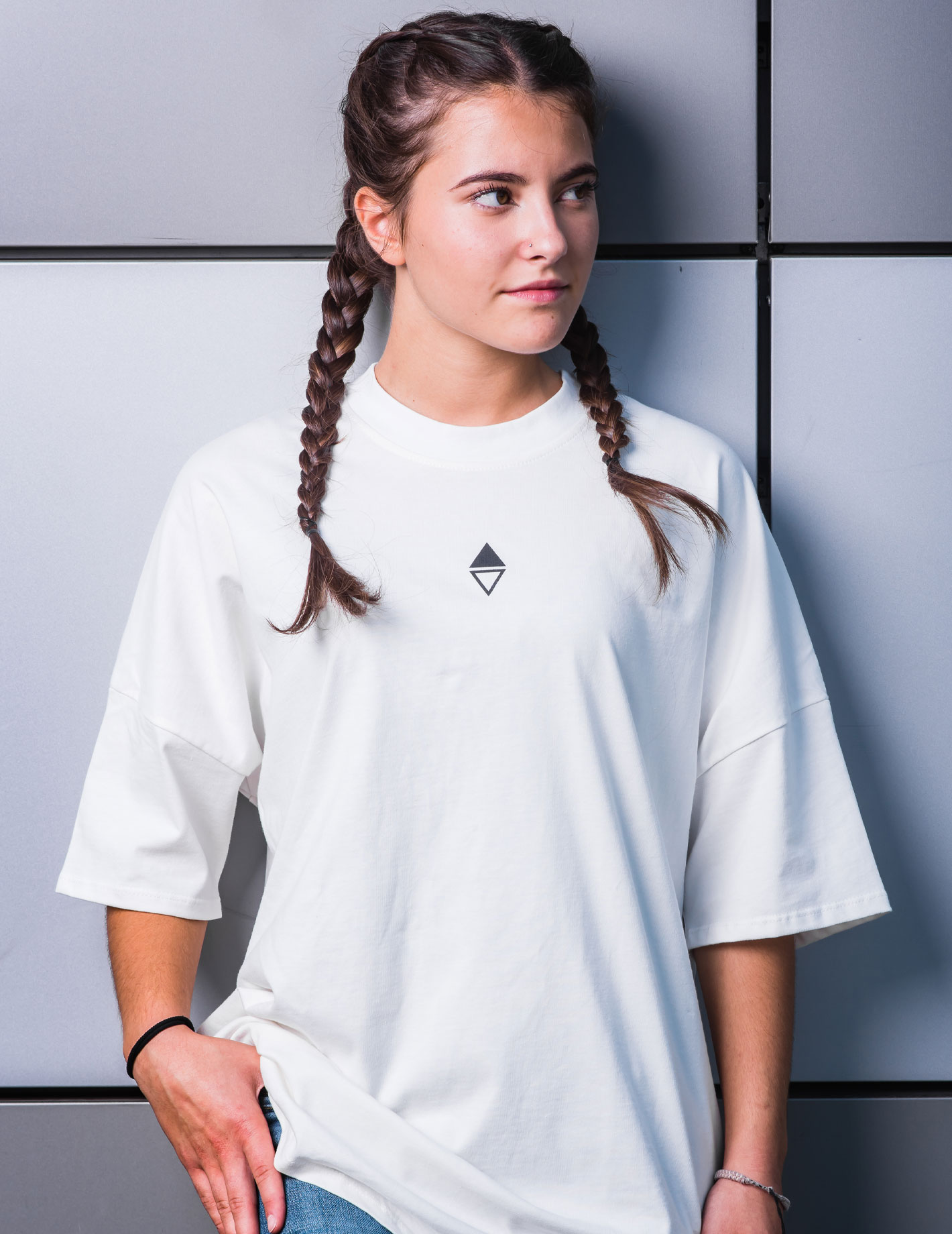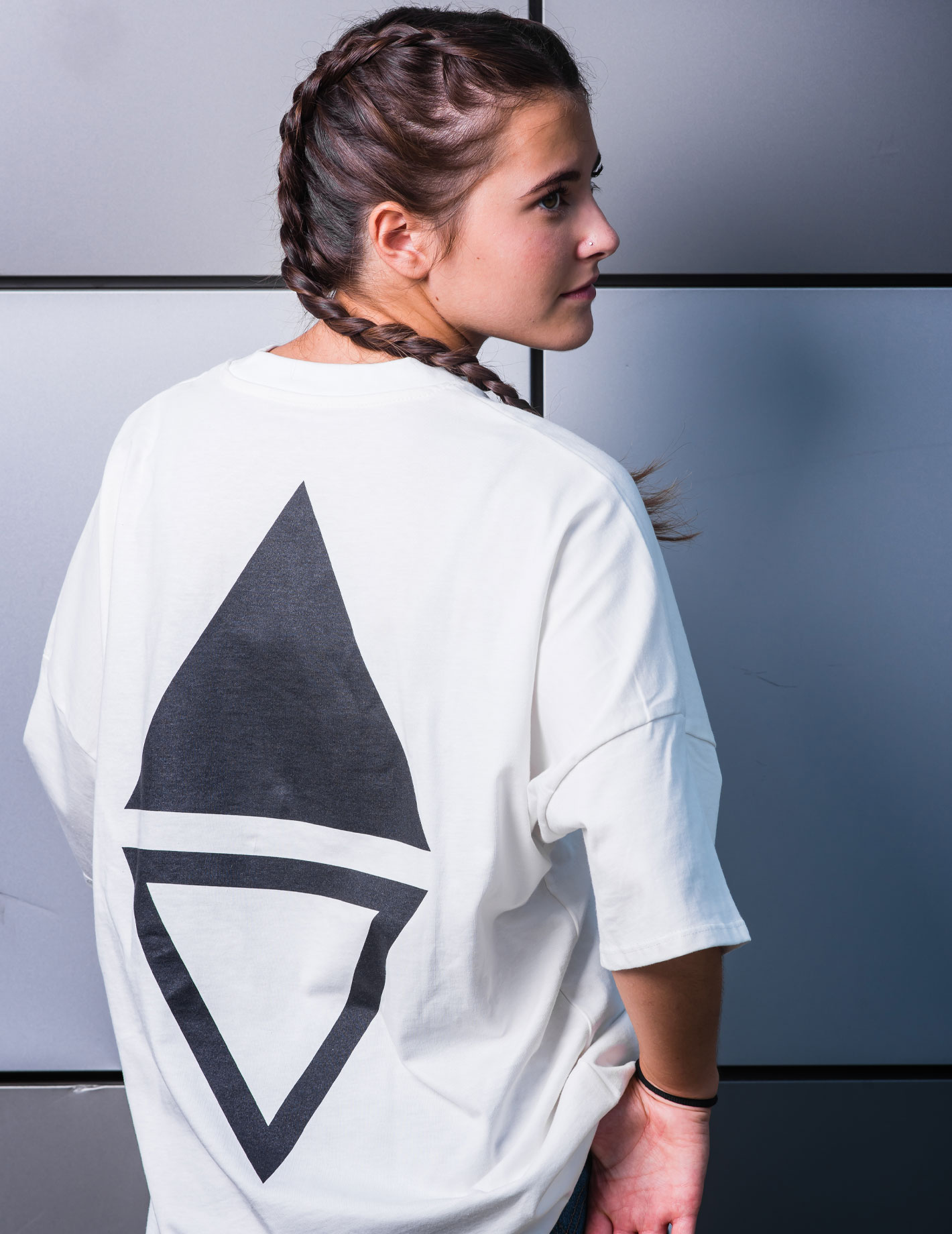 La scelta del tessuto si è basata proprio sulla volontà di rendere questo capo distintivo e nel contempo accessibile ai giovani. Il Jersey di cotone è risultato essere il tessuto ideale proprio per le sue caratteristiche di semplicità, elasticità, morbidezza e comodità.